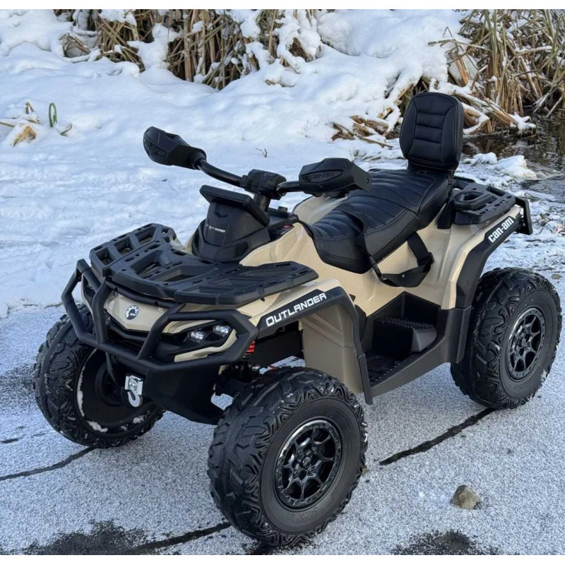 Детский квадроцикл двухместный BRP Can-Am Outlander (24V, полный привод, хаки) - DK-CA005-KHAKI – это первый двухместный детский квадроцикл. Модель производится на одной из лучших фабрик DAKE по лицензии компании BRP, имеет полный привод и максимальный набор функций. Из особенностей хотелось бы отметить емкий и мощный АКБ 24v 7ah (на аналогах обычно установлен АКБ 12v) и удлиненное кресло с ручками для второго пассажира.