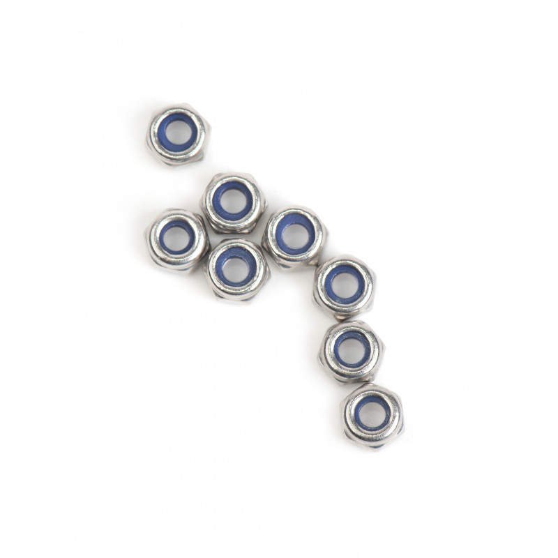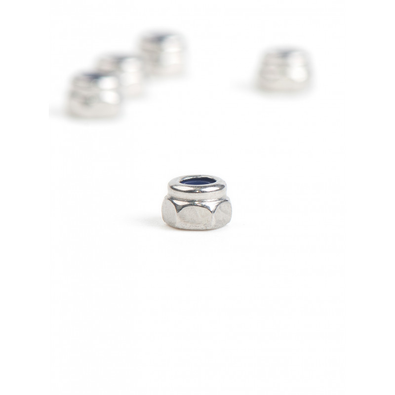 Надёжная гайка по международному стандарту DIN 985, специально разработанная для крепления мелких элементов и сильно распространённая среди радиоуправляемых моделей. Нержавеющая сталь класса A2 гарантирует длительный срок службы без риска коррозии, деформации или поломки..