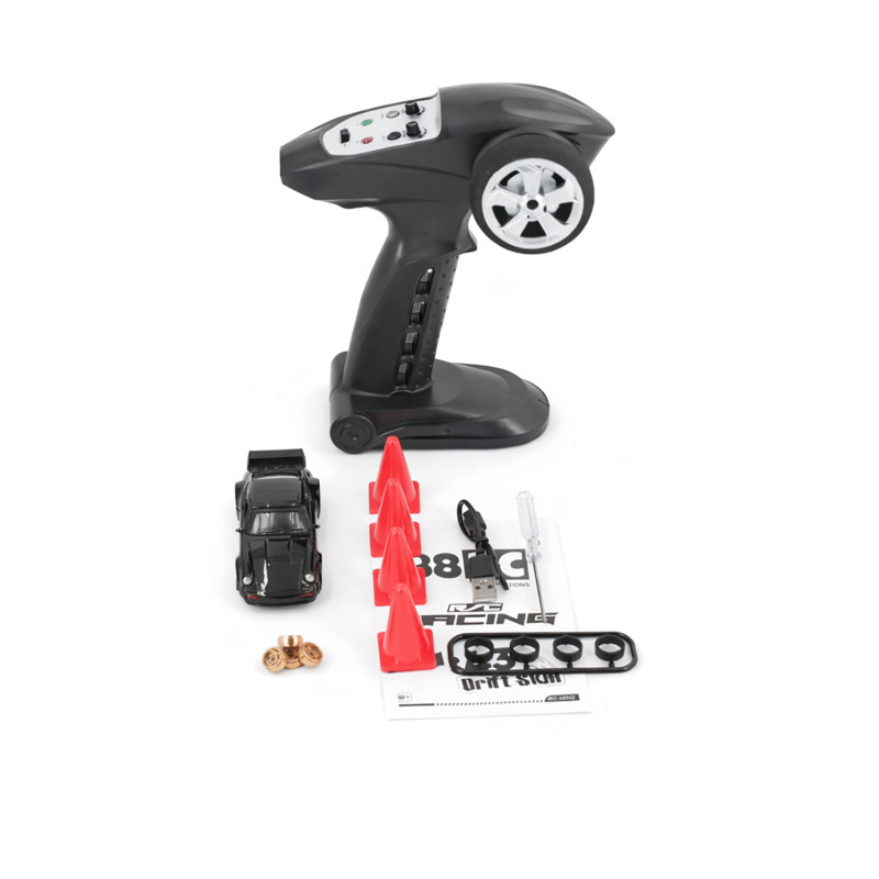 Радиоуправляемая машина Porsche 911 для дрифта - RC43-P-BLACK - это машина, которая предназначена для дрифта. Она имеет полный привод и выполненная в масштабе 1:43. Машинка управляется при помощи пульта ДУ, работающего на частоте 2,4 ГГц. В наборе также поставляются комплект запасных колес, дорожные конусы, зарядное устройство и аккумулятор. Во время движения у машинки светятся фары.