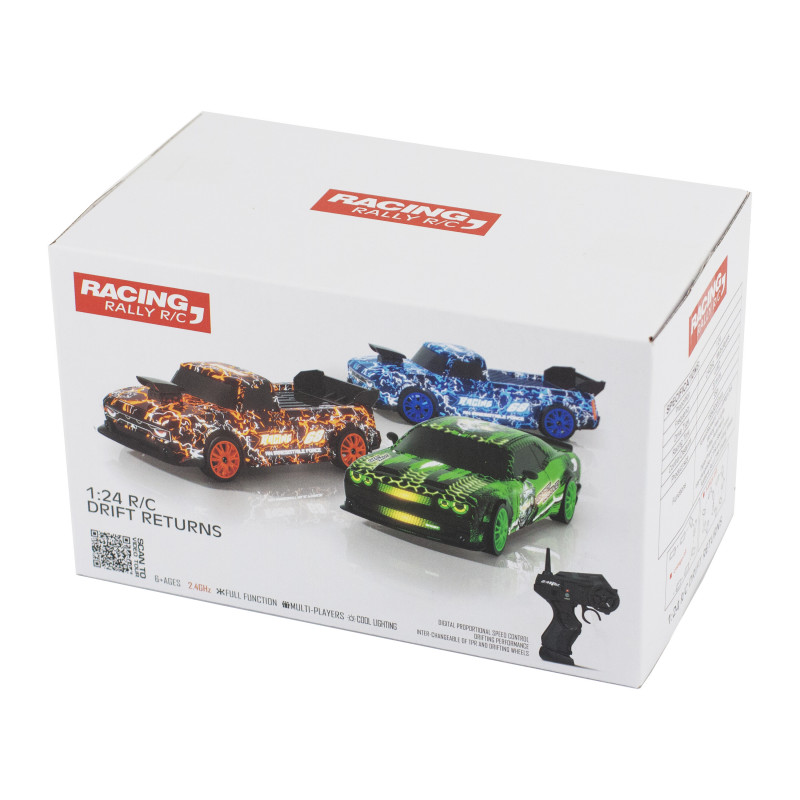 Радиоуправляемая машина для дрифта Dodge (19 см, 15 км/ч, сменные колеса, фишки) - SC24A25 - это машина, которая предназначена для дрифта. Она имеет полный привод и выполненная в масштабе 1:24. Машинка управляется при помощи пульта ДУ, работающего на частоте 2,4 ГГц. В наборе также поставляются комплект запасных колес, дорожные конусы, зарядное устройство и аккумулятор. Во время движения у машинки светятся фары.