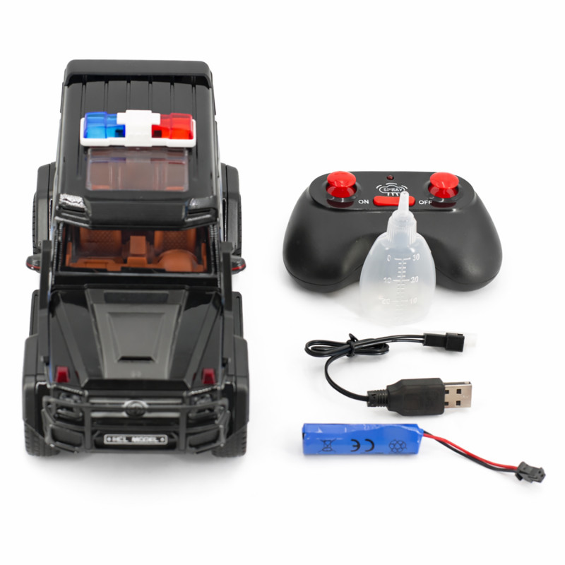 Радиоуправляемая металлическая полицейская машина Mercedes G500 1:22 - HCL-3608-BLACK - это стильная и детализированная модель с кузовом DIE-CAST, светодиодной подсветкой фар и эффектным парогенератором с подсветкой. Открывающиеся двери, капот и багажник делают модель максимально реалистичной. Отличный вариант для игры и подарка.