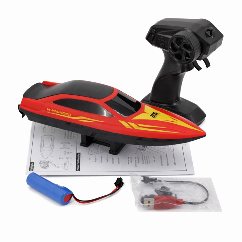 Катер HJ825 легок в управлении. Имеет две скорости движения. Пульт управления пистолетного типа работает на частоте 2,4 GHz, что гарантирует качественный сигнал и полную защиту от помех.