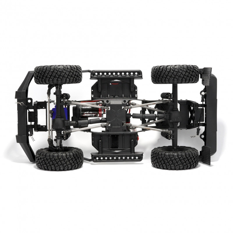 Внедорожник подготовлен для эксплуатации в сложных условиях. Электронный регулятор скорости с влагозащитой, сервопривод рулевого управления с защитой от воды и песка, карданный постоянный полный привод 4WD, защита трансмиссии от попадания песка и камней. Вездеходные колеса с противоскользящим покрытием позволяют внедорожнику подниматься по склонам и преодолевать каменистые поверхности. Управление - пропорциональное.