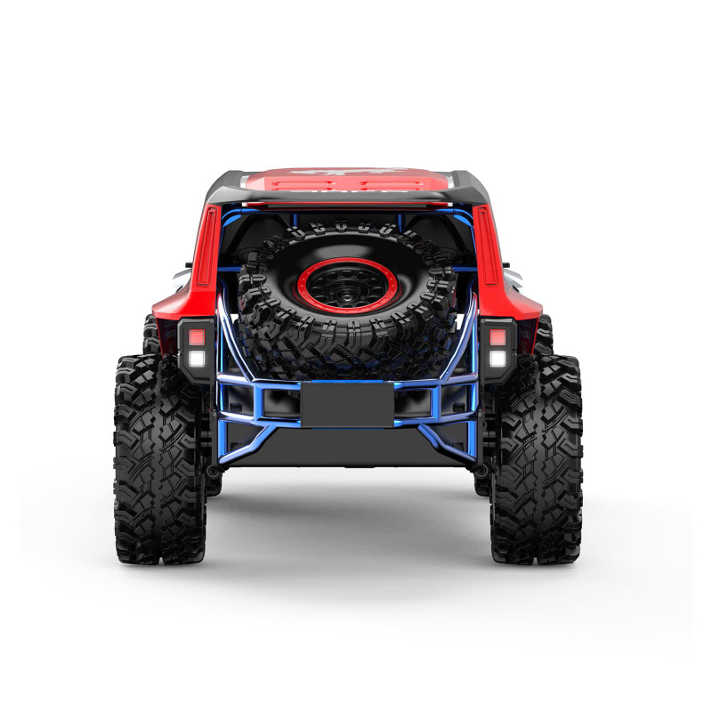 Автомобиль оснащён бесколлекторным двигателем, обеспечивающим высокую скорость, резкий разгон и стабильную работу даже при интенсивных нагрузках. Полный привод 4WD и независимая подвеска позволяют уверенно преодолевать песок, гравий, траву и неровные поверхности. Металлические элементы трансмиссии повышают надёжность и срок службы модели.