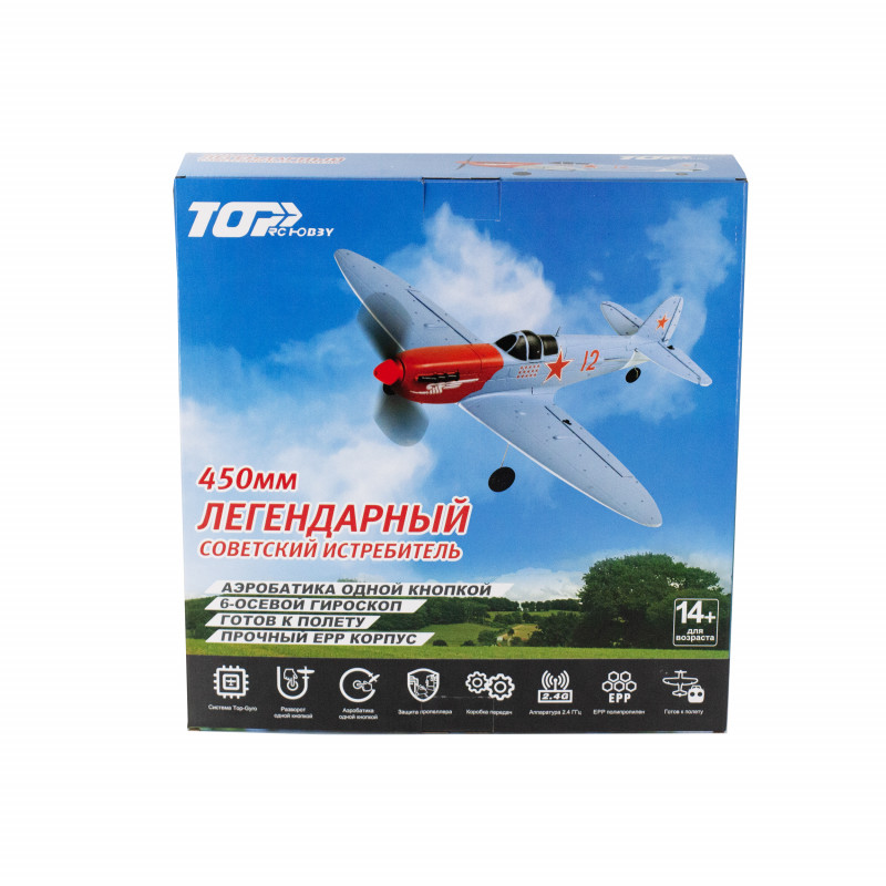 Радиоуправляемый самолет истребитель (6-axis, EPP, 450 мм, RTF) - TOP003B02 - это модель легендарного советского истребителя для начинающих с системой стабилизации TOP-Gyro в комплектации RTF. Трехуровневая система управления полетом обеспечивает легкое управление полетом, не говоря уже о пилотажном полете простым нажатием одной кнопки.
