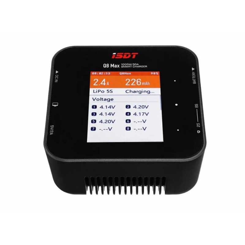 ISDT Q8 Max — это компактное и мощное зарядное устройство для аккумуляторов LiPo и других типов, рассчитанное на ток заряда до 30А и мощность до 1000Вт. Модель предназначена для FPV-дронов, авиамоделей, RC-автомобилей и других радиоуправляемых систем, где требуется быстрая и точная зарядка.